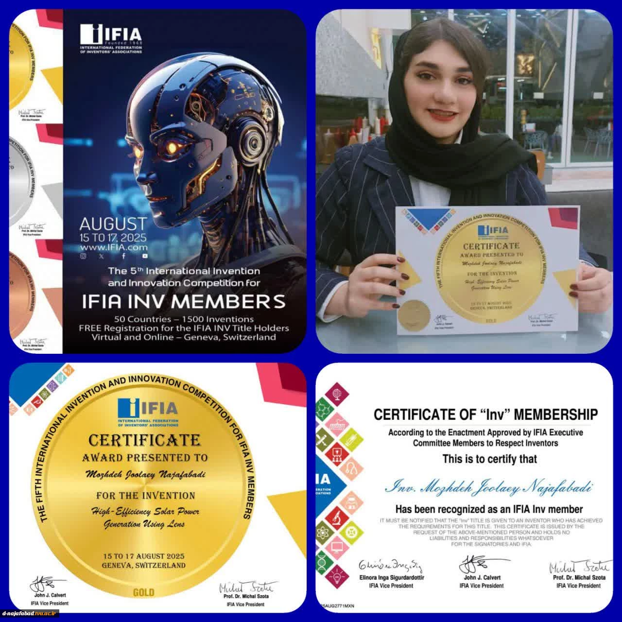 امتیاز دهید : کسب مدال طلای مسابقات بین المللی اختراعات ژئو سوئیس وهمچنین عضو رسمی ایفیا با لقب افتخاری INV توسط دانشجوی آموزشکده ملی مهارت دختران نجف آباد 2 چهارشنبه 9 مهر 1404 ساعت 10:15