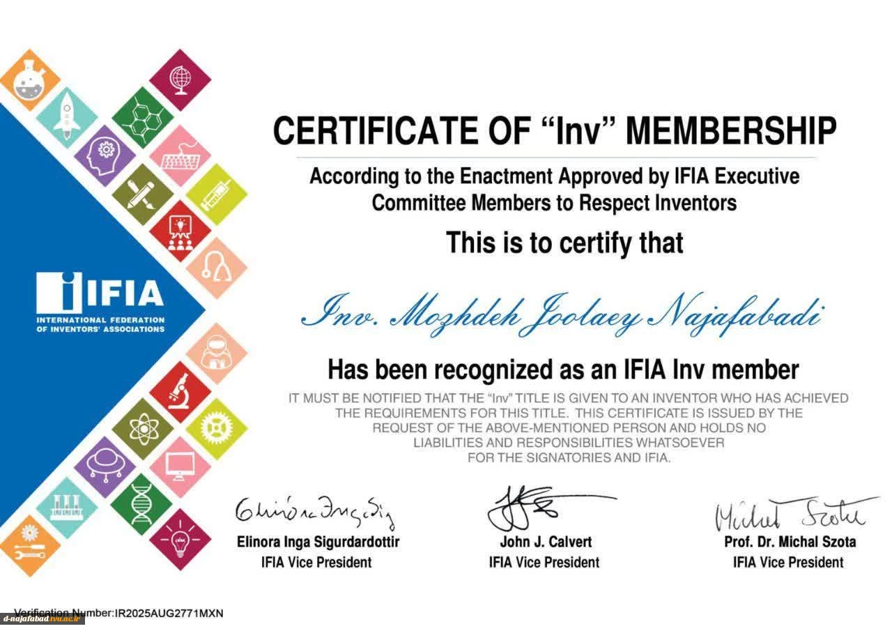 امتیاز دهید : کسب مدال طلای مسابقات بین المللی اختراعات ژئو سوئیس وهمچنین عضو رسمی ایفیا با لقب افتخاری INV توسط دانشجوی آموزشکده ملی مهارت دختران نجف آباد 5 چهارشنبه 9 مهر 1404 ساعت 10:15