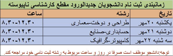 امتیاز دهید : اعلام زمانبندی دانشجویان پذیرفته شده مقاطع کاردانی و کارشناسی آموزشکده ملی مهارت دختران نجف آباد 3 دوشنبه 14 مهر 1404 ساعت 13:21