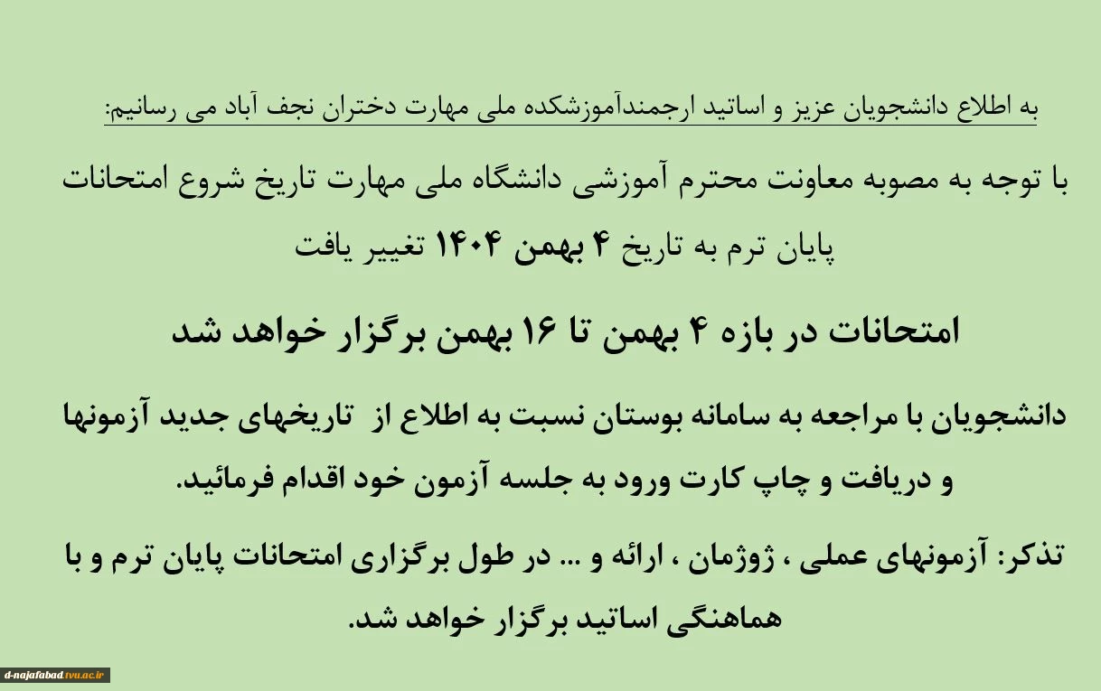 تغییر بازه امتحانات به 4 تا 16 بهمن 2